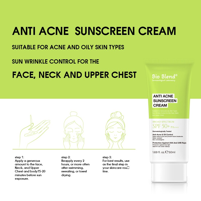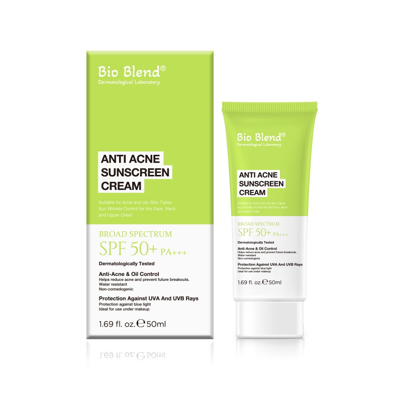 Bioblend Anti-Acne Sunscreen Cream is a dermatologist-formulated solution designed for oily and acne-prone skin. It provides broad-spectrum SPF protection against harmful UVA and UVB rays, helping to prevent sun damage and pigmentation. Infused with acne-fighting ingredients like salicylic acid and tea tree oil, this lightweight, non-greasy formula controls excess oil, unclogs pores, and reduces the risk of breakouts. Aloe vera and green tea extract calm inflammation and soothe irritated skin, making it ideal for daily use. Non-comedogenic, paraben-free, and suitable for all skin types, Bioblend keeps your skin protected, clear, and shine-free all day long.